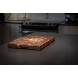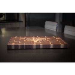 La planche à découper Tabula, conçue en grain de bout comme les blocs de boucher, prolonge la vie de vos lames aiguisées.